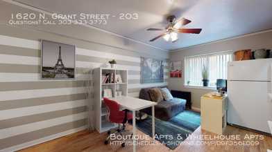 Winbro 1620 N Grant St, Denver, CO is a rental apartment building with 2 floorplans available. It is located in the Uptown neighborhood of Denver. It has apartment amenities including assigned parking, high ceilings, ceiling fan, on-site laundry, and hardwood floor. It has building amenities including controlled access, and on-site laundry.
