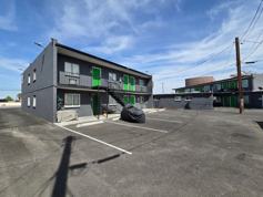 This upstairs 1-bedroom, 1-bathroom apartment blends updated interiors with the convenience of an all-inclusive community. The property is easily recognized by its bright green doors and dark gray exterior, giving it a distinctive and modern presence in Downtown Las Vegas. Inside, the apartment offers an efficient layout with recent updates designed for comfortable city living.