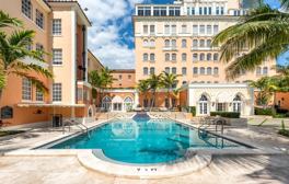 The Mirasol offers unique amenities including a waterfront courtyard, swimming pool, and private boat slips. The main entertainment lobby and garden room have been restored to maintain their historic style, charm, and beauty.