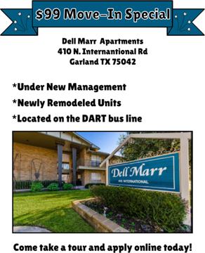 SaveDell Marr 410 N International Rd is a rental apartment building with 7 floorplans available. It is located in Garland.