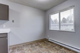* Neutral grey paint with white trim, carpet & vinyl flooring