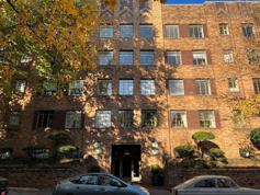 This expansive studio offers generous space and gleaming hardwood floors throughout. The open living area flows seamlessly into a tiled kitchen featuring abundant cabinetry and ample counter space for everyday cooking. A dedicated dining area adds flexibility and comfort, while the dressing area with built-in armoire provides functional storage and leads to a bathroom finished with classic subway tile.