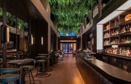 Entering through a European oak entry door, the home opens to a beautifully appointed kitchen featuring super-white quartzite countertop and island, bronze and tinted mirror glass backsplash, white oak cabinetry in a matter lacquer finish and fluted mirrored glass, and white oak paneled walls. An elegant Miele appliance suite includes a refrigerator and freezer, induction cooktop with fully vented hood, wall and speed ovens, and dishwasher. A marvel wine refrigerator stylishly complements the Miele appliance package. An undermounted Kraus sink is outfitted with a custom-designed chrome faucet. The kitchen leads into an airy living room with refined detailing by Thomas Juul-Hansen throughout and 7" European oak flooring.