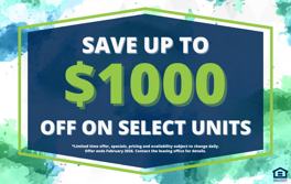 Rent Special available! Save up to $1000 off first months rent on select homes! *Limited time offer. Must move in by February 28th, 2026. Restrictions apply. Specials, pricing and availability subject to change. Contact the leasing office for details
