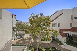 Discover a peaceful urban retreat in the highly sought-after community in the Marina District. This beautifully remodeled end-unit loft features soaring vaulted ceilings and abundant natural light, complemented by a cozy gas fireplace and a private patio. The modern kitchen includes mocha wave quartz countertops, white shaker soft close cabinetry, upgraded Samsung appliances, custom backsplash, and recessed lighting. Upstairs, a versatile loft with a built in Murphy bed can be used as a home office, den, or optional second bedroom. The primary bedroom offers balcony access and a remodeled ensuite bathroom with custom tiled bath/shower. Additional highlights include new carpeting, Samsung smart TVs, a custom granite kitchen table, and a contemporary ceiling fan.