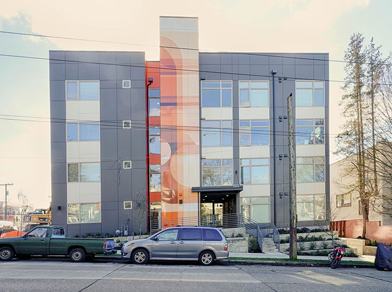 The building boasts 48 thoughtfully designed modern efficiency studios, each featuring functional urban layouts, granite countertops, sleek hardwood floors, and expansive windows that flood the space with natural light. Select units include queen-sized Murphy beds for added versatility.