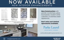 Parke Laurel is an apartment community uniquely situated on a hilltop in Laurel, Maryland just twenty minutes away from the excitement of Washington, DC. This serene community is nestled on more than seventeen acres of well-kept, wooded landscaping providing stunning views from every apartment home. We are minutes to NSA, FT. Meade, Goddard Space Flight Center, Bowie State, University of Maryland, PG and Howard Community Colleges, Arundel Mills Mall, Columbia Mall, Laurel Towne Center, Historical Main Street Laurel, Harris Teeter, LA Fitness and Planet Fitness, University of Maryland College Park, Laurel Regional Medical Center, Maryland Live Casino and Laurel Race Track. Our location allows for easy access to I-295, I-495, I-95, BW Parkway, and Routes 200 and 100. Easy commute to Montgomery County and Howard County. Boasting spacious one, two, and three bedroom designs, everyone can find a home to fit their needs. Our apartment homes offer lavishly renovated kitchens any gourmet chef