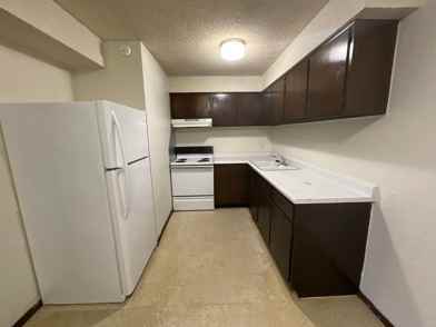The bright living area provides plenty of room to relax, entertain guests, or enjoy your daily routine. The kitchen is equipped with a stove and refrigerator, making meal preparation simple and convenient. Both bedrooms are generously sized, offering flexibility for roommates, a small family, or anyone needing additional space for a home office or hobbies.