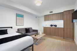Explore everything that our one- and two-bedroom apartments have to offer. Located in the heart of Brentwood, Los Angeles, our boutique apartment community features thoughtful interiors, modern features, and access to exceptional amenities. One- and Two-Bedroom Apartments. When you explore our luxury apartments in Brentwood, CA, you will be captivated by premium features and top-of-the-line amenities. The quality experienced when living with us is sure to please anyone who is looking for luxury Brentwood apartments. Furnished Co-Living Apartments If you are looking for a new way to experience the uniqueness of co-living, you can rent one of our quality Brentwood apartments set up comfortably for that purpose. With a co-living floor plan, every resident will have their own bedroom but share the kitchen and other common spaces, including a washer and dryer. Co-living offers an enjoyable, social environment while still giving you the amenities and privacy you want and need.