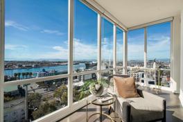 This expansive 945 sq. ft. residence on the 14th floor offers refined urban living with breathtaking, unobstructed views. Floor-to-ceiling windows span the living room and bedroom, filling the home with natural light and showcasing panoramic views of the Oakland Estuary, Jack London Square, San Francisco skyline, Mt. Tamalpais, the Peninsula, and multiple iconic bridges including the Bay Bridge and Golden Gate Bridge. The home features 1 spacious bedroom and 1.5 bathrooms, a private balcony, and beautiful hardwood floors throughout the main living areas. The bedroom includes new carpeting and custom closets, while custom window blinds add style and privacy. Additional comforts include central air conditioning and a bright, open layout designed for modern city living.