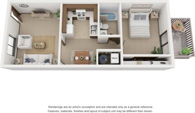 These 1 Bed/1 Bath apartments feature a spacious 640 sq. ft. floor plan with essential appliances including a refrigerator, oven range, and dishwasher. Each unit offers ample living and dining room space, a large closet, a private balcony and front patio. On-site parking is also available.