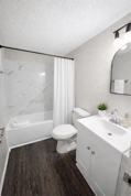 1 bed 1 bathroom unit approx. 600 Sq ft. New carpet and floors in bath and kitchen. Counters and tub just refinished.