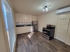 491 square feet. All electric with window units for heating and air conditioning. Appliances include a refrigerator, stove, and microwave. Water, sewer, and trash included with rent.