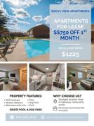 Rocky View Apartments 1810 Rocky View Way is a rental apartment building with 3 floorplans available. It is located in Knoxville. It has apartment amenities including dishwasher, and on-site laundry. It has building amenities including swimming pool, outdoor space, on-site management, and on-site laundry. Cats and dogs are allowed, making it a pet-friendly building.