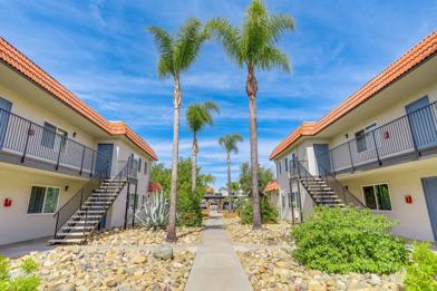 Closed off from the busy town outside, the sparkling pool and tropical oasis of a courtyard are overlooked on each side by the homes of Twin Villas. This clean gated community offers two onsite laundry facilities, ample parking and a picnic area with benches under some shade trees.