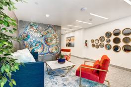 Each spacious one-, two-, and three-bedroom apartment is custom-designed for style and ease of living with premium finishes throughout. Enjoy in-home washer and dryer, gourmet kitchen with Energy Star stainless steel appliances, waterfall quartz countertops, modern mosaic backsplash, wood-style flooring, smart Nest thermostats, Leviton HomeKit lighting controls, electric ambiance fireplace, USB charging outlets, and designer fixtures. Select homes offer private balconies, breakfast bars, or formal dining areas.