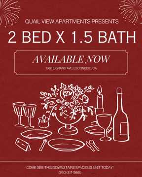 Spacious 2-bedroom, 1.5-bath apartment home at Quail View Apartments, located at 1960 E. Grand Ave, Escondido, CA 92027.
