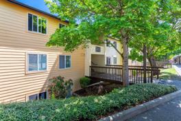 This unit is located on the top level in the corner. It features 933 square feet of space, new plush carpeting, new vinyl wood flooring, all full sized appliances including washer and dryer, wood burning fireplace, and a private patio with ample storage space!
