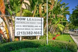 Westmoreland Regency Towers 433 S Westmoreland Ave, Los Angeles, CA is a rental apartment building with 7 floorplans available. It is located in the Rampart Village neighborhood of Los Angeles. It has apartment amenities including dishwasher, air conditioning, ceiling fan, on-site laundry, balcony, and walk-in closets. It has building amenities including elevator, garage parking, swimming pool, on-site laundry, on-site management, controlled access, and outdoor space.