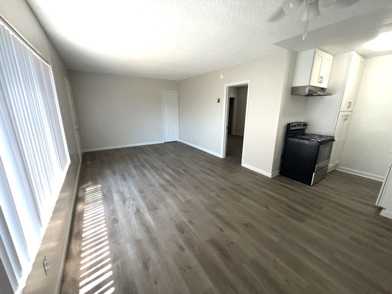 Welcome to Winnetka Palms, where we have an upgraded lower unit apartment located in the vibrant neighborhood of Winnetka, CA. This one-bedroom, one-bathroom apartment offers a blend of comfort and style. The unit features a wall A/C to keep you cool during the summer months, and ceiling fans for added comfort. The kitchen is a chef's dream with custom wood cabinets, quartz counters, a stainless steel single bowl sink, and a stainless steel stove, (refrigerator available upon request). The laminate plank flooring adds a touch of elegance to the space. The building offers a community pool for residents to enjoy, as well as an onsite community laundry room for added convenience, plus an intercom and remote entry system.