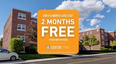 Rent Special available! Move in and save! Free rent, utility credit or gift cards* Get 2 Months FREE Rent on a 14-month lease, OR $300 monthly utility credit on a 14-month lease, OR a giftcard from everythingcard.ca.* *Offer valid on select suites. Value must not exceed 2 months' rent value. Additional terms and conditions may apply.