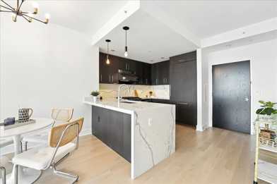 Stunning 1-bedroom, 1-bath condo with sweeping NYC views at 1400 Hudson Street. This south-facing home features an open-concept layout, oversized windows, and a private balcony that fills the space with natural light. The sleek chef?s kitchen offers high-end appliances and a breakfast bar overlooking the spacious living and dining areas. The bright bedroom includes a large walk-in closet and sits next to a modern bath with custom vanity and tub/shower combo. Enjoy luxury amenities: pool, landscaped courtyard, rooftop deck with BBQ grills and Manhattan views, fitness center, residents? lounge, playroom, 24-hour concierge, and PATH shuttle service. Located in a vibrant uptown neighborhood near cafés, shops, parks, plus ferry and bus access to NYC.