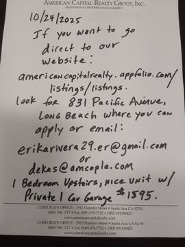 Please do not contact our Corporate office, as this rental is being handled and all activity by one of our Managers out of Downey. The Leasing Assistant is a part time employee, and will only work limited hours on this rental.