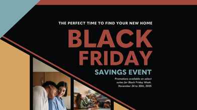 Rent Special available! Black Friday Savings! Free Month of Rent! Black Friday Savings Event! November 24-30! Rent one of our select suites and receive a FREE month of rent!* * Offer applies to the base rent of the suite for the first month only and excludes additional items or services such as parking or storage. Available to new applicants only; tran