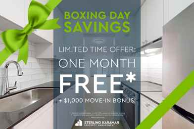 Rent Special available! Boxing Day Savings | Enjoy One Month FREE on a 13-Month Lease + $1,000 Move-In Bonus!* (Select Suites Only)
