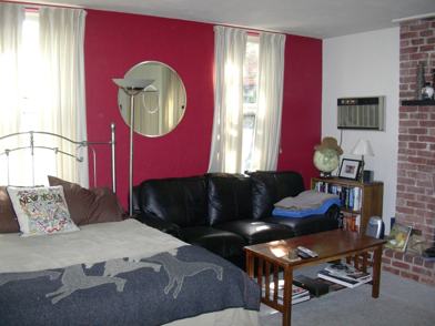 A retro-industrial look in a 100 year old Colonial mansion. Recently remodeled; new Euro cabs & kitchen appliances, cool cosmetic updates. NEW ceramic in bath and kitchen. Faux painting in bath and entryway accented with exotic 'hot red' (rojo caliente) in living room to add charm and character. Definitely not your typical bland vanilla box apt. If you want plain white walls, this may not be your apartment!