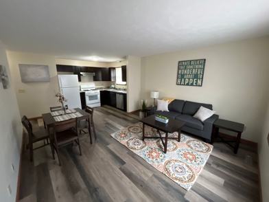 Need somewhere move in ready with living room and dining room provided? Look no further as this property is furnished to save your back from moving aches and pains! You care sure to enjoy this spacious 2 bedroom/1 bath apartment that features shiny wood look vinyl throughout to give your home a modern feel and easy maintenance to keep your home clean. The desirable lay out of open kitchen and living room includes a stove, refrigerator, dishwasher, and garbage disposal in the kitchen. There is plenty of closet space throughout, and washer/dryer hook-ups in each unit! Stay comfortable year round with central air. Have a little one? This apartment is conveniently located close to Wa-Nee Community Schools and historic downtown Nappanee shops & restaurants. Convenient reserved residential parking, and separate guest parking is available as needed. You can relax with exterior care and snow removal from parking areas included! Have a furry friend that wants to tag along? This property will allow 1 dog under 25lbs with associated fees. Sorry, no cats and no smoking permitted. Tenant is responsible for all utilities separate from the rent: Gas/Electric - NIPSCO Water/Sewer - PMS to bill tenant monthly Trash - $20/month dumpster fee If washer/dryer is present in unit, tenant can rent them for additional $34/month. Property Furnished and items missing or damaged will be charged for replacement. Monthly rental fee for furnished items is $66/month Limited time deposit leasing special $500 due at lease signing and $50/monthly deposit fee until total $1,000 is paid. Tenants can pay full $1,000 deposit if they wish at signing. Don't let this one pass by! Contact us at 574-534-7368 to see about scheduling a showing!