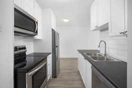 Our renovated suites provide you with an updated and stylish new home. Updated suites offer open-concept kitchens featuring modern features and finishes. Popular new features include chrome accents, breakfast bars, laminate countertops, new overmount sinks, and tiled backsplashes. A full stainless-steel appliance package is also included. Bathrooms boast upgraded fixtures, new mirrors, and new vanities with laminate countertops. You will also find newly finished flooring which is either polished and refinished parquet flooring or luxury vinyl plank flooring. There are new tiles throughout our units, as well as new light fixtures. Finally, all interior walls and doors have been upgraded with fresh paint and modern hardware to complete the look and feel of your bright and modern space.