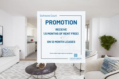 PROMOTION: Receive 1.5 months of rent free & no last month deposit! *Certain conditions apply, please inquire for more details*