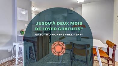 Rent Special available! Limited PROMOTION! Receive Up to TWO Months Free Rent *Conditions apply (Baux de 18 mois seulement – Conditions applicables) Signez un bail de 18 mois et profitez de : 2 mois de loyer GRATUITS dès le début Immeubles acceptant les ani