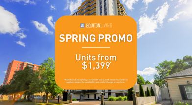 Rent Special available! SPRING PROMO | Limited Suites Available! Units starting at $1,399.* *Rent based on signing a 14-month lease, with move in incentives applied, subject to availability and could change at any time.