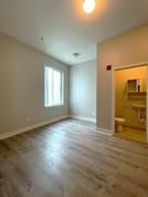 Bamboo flooring, Kitchenette with Microwave Convection Oven and built in Cooktop, Granite counters, Controlled Access building, Cats accepted, and Laundry facilities on site.
