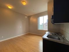 Bamboo flooring, Kitchenette with Microwave Convection Oven and built in Cooktop, Granite counters, Controlled Access building, Cats accepted, and Laundry facilities on site.
