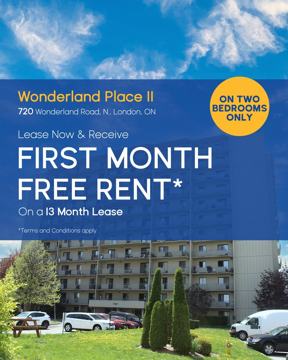 If you're looking for an affordable apartment in London Ontario that also has a great location, take a look at Wonderland Place II by Drewlo Holdings. For anyone new to London or Canada, this apartment rental's fantastic location makes it a perfect place to get acquainted with the city while being walking distance from all your shopping and dining needs.