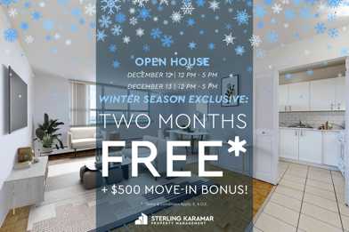 Rent Special available! Winter Exclusive | Enjoy 2 Months FREE on a 14-Month Lease + $500 Move-in Bonus for Move-ins by January 1!* Winter Exclusive | Enjoy 2 Months FREE on a 14-Month Lease + $500 Move-in Bonus for Move-ins by January 1!* *Terms & Conditions Apply.