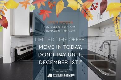 **Discover Our Autumn Specials | Move-In Today & Don't Pay Until December 1!* (Select Suites Only)**