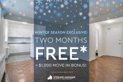 Rent Special available! Winter Exclusive | Enjoy 2 Months FREE on a 14-Month Lease + $1000 Move-in Bonus for Move-ins by January 1!* Winter Exclusive | Enjoy 2 Months FREE on a 14-Month Lease + $1000 Move-in Bonus for Move-ins by January 1!* *Terms & Conditions Apply.