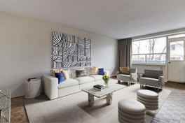 The unit is freshly painted, has newly finished flooring, new tiles in the kitchen and bathrooms, and brand-new light and hardware fixtures.