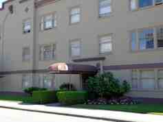 This 100-year-old building is charming! It still has a number of the original features. You will love the rounded archways, wooden windows and fireplaces (display only). All apartments have gas stoves, venetian blinds and built-in ironing boards. If you are lucky, you may be able to rent one of the few units with leaded glass in the kitchen cabinetry.
