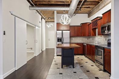 This spacious 3rd-floor Downtown St. Paul apartment offers an impressive open layout with soaring ceilings and tall windows that fill the home with natural light. The large living room flows into an upgraded chef-style kitchen featuring rich mahogany cabinets, a full tile backsplash, stainless steel appliances, a built-in wine rack, and a generous center island that provides excellent workspace and seating. The apartment feels wide, bright, and inviting with hardwood floors throughout, barn doors, built-in shelving, and double closets for ample storage. The tiled bathroom is modern and clean, and the in-unit washer and dryer add everyday convenience. Step outside onto your private balcony or enjoy easy access via the building elevator. This home blends style, space, and function in one of the most walkable locations in Downtown St. Paul, surrounded by restaurants, parks, entertainment, and transit.