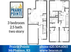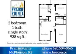 Prairie Pointe Residences, a community of apartments in McPherson, Kansas, is exactly where you need to be! Focused on building an undeniable sense of home, our community offers a vast selection of two-bedroom duplexes and 3-bedroom townhomes. Prairie Pointe is pet-friendly, smoke-free, and close to plenty of shopping, dining, and entertainment. Residents also enjoy the community clubhouse with high speed Internet, in addition to fully-equipped kitchens, ample storage, and attached garages with opener.