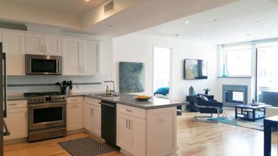 Coming soon... top floor, spacious, condo-style 2bed/2bath apartment with designer touches throughout will not last long! Finishes include: Gourmet kitchen with full stainless-steel appliance package (refrigerator, dishwasher, gas stove and built-in microwave), extremely large breakfast bar, quartz counter tops in the kitchen and bathroom. The over-sized living room comes with floor-to-ceiling, wall-to-wall windows with custom blinds! A large balcony and cozy gas fireplace, viewable from inside the apartment and outside from the balcony. This home includes an in-unit stacked washer/dryer set. Each bedroom offers plush carpeting, large wall-to-wall closet in the guest bedroom and 2 closets in the master bedroom (wall-to-wall and walk-in). This home also features 9-foot ceilings with recessed lighting, central air and heat, wood flooring and other designer finishes.