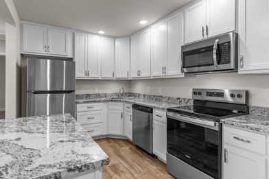 We are situated at the intersection of Interstate 70 and Highway 94, and nearby the new Page Avenue extension in St Charles. Whatever your destination may be, our location provides an easy route in any direction. We are located just minutes west of the historical St. Charles Riverfront and the beautiful Missouri Riverbluffs. Many of our spacious units feature updated lighting with LED fixtures and ceiling fans, as well as modern luxury vinyl plank flooring throughout, along with an open kitchen layout and updated granite countertops. Enjoy the convenience of washer and dryer hookups in each unit. With a prime location, Sherman Square Apartments offers the perfect blend of comfort and convenience for your next home. Contact us today to schedule a tour and see all that Sherman Square has to offer!