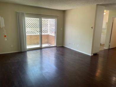 A bright, large remodeled unit. Private entrance patio to a large living room with hardwood floors through the entire apartment with a new AC/heater wall unit. The kitchen has lots of cabinets and countertop space, dishwasher, electrical stove/oven, separate dining area with light fan ceiling. No refrigerator provided.