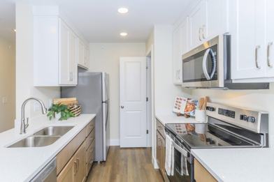 We offer beautiful studio, one, two, three, or four-bedroom apartments for rent, including fully furnished apartments. Each apartment includes a fully equipped kitchen and vinyl wood flooring. Select floor plans have additional storage, quartz countertops, walk-in closets, and washer and dryer connections. A balcony increases your living space and provides a relaxing space to unwind.
