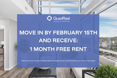 Rent Special available! 1 Month Free Rent Applies to select suites for new applicants only. Terms and conditions apply. Contact the Community Team for more information.